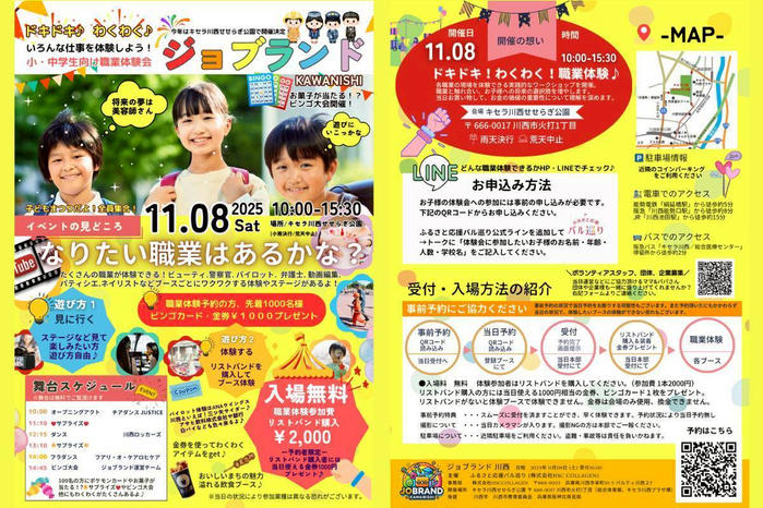 - ジョブランド川西は小・中学生に職業体験をしてもらうと共に、他にも楽しんでもらえるイベント盛りだくさんのイベントなんです!